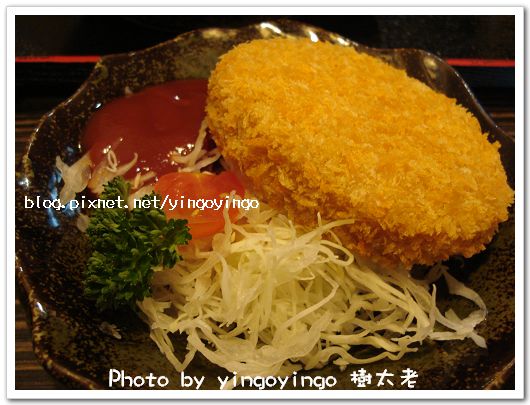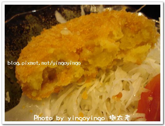 其實原是要點時蔬青菜,但店家說售完,這是我好奇的可樂餅