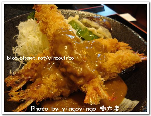 蝦炸的很酥再淋上咖哩醬很不錯,不過服務人員建議可以再加醬油,但我們一致覺得,醬汁對我們而言,