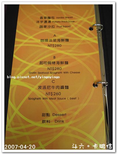 義大利麵系列$260~280元,可是只有斗六店有供應的喔,