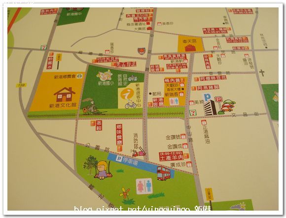 因這個時間騎太熱,流的滿身的汗,還是決定下次來借單車逛新港時,還是下午三點半後騎較舒適,用單車來逛新港真的很棒,又有達成節能省碳,且整個人都優閒起來了呢,在新港玩個半天都沒問題,下面的圖有95分紅豆餅(我們去的那天攤子沒賣)、手工包子不知口味如何囉。看起圖來,有很多各式小 吃,有機會待下次再嚐囉,因我們回家前騎去吃那知名的新港蒸餃去啦…
