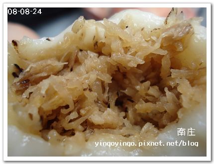 裡面包著蘿蔔絲、豬肉塊、香菇,很香很好吃,讓我一下就吃完一塊,要不是還要再去吃其它當地小吃,會想再吃一塊哩