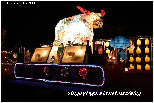旋轉之時還放了兩次煙火,原本想把拍下來的檔案丟上來,應該是家裡的網路太慢啦~挺喜歡這牛的外型哩,也剛好看到了九點半的煙火秀,超棒的,果真,看燈會還是有主燈的地方特別有感覺