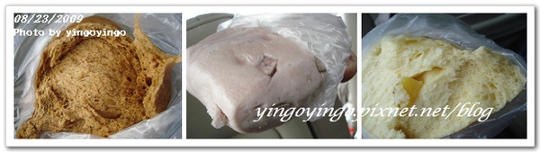 中間芋頭饅頭及右邊的地瓜饅頭,這兩款最大特色是,饅頭內都有一小塊一小塊的芋頭(地瓜),真是雙種口感