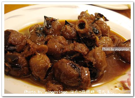 一支魷魚一個嘴,而這需要慢慢的啃咬,魷角嘴吃起來很Q,帶著像魷魚絲的滷汁的香氣,只是是濕潤的口感,甜甜的,與魚焿內的魷魚嘴相比,較Q,而嘴的黑黑的要吐去。