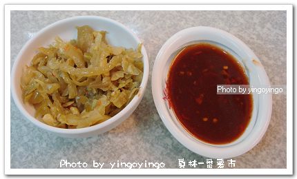 店家就端來的辣醬及酸菜,原來店家是採讓客人依喜好酌量加入